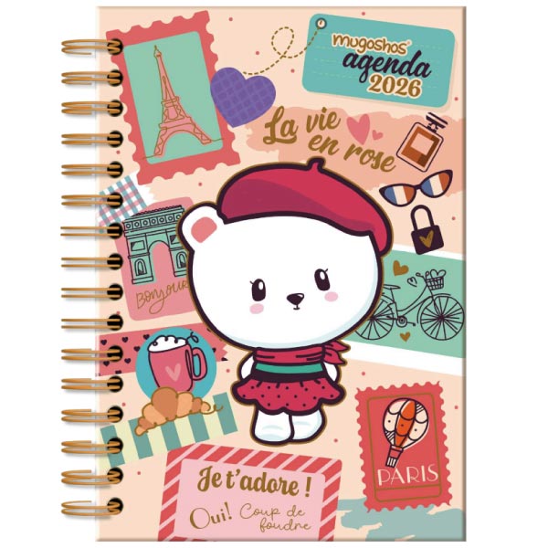 Agenda Mugoshos 2026 – Osita en París. Planifica tu año con ternura, versículos inspiradores y encanto parisino en cada página llena de color y fe.