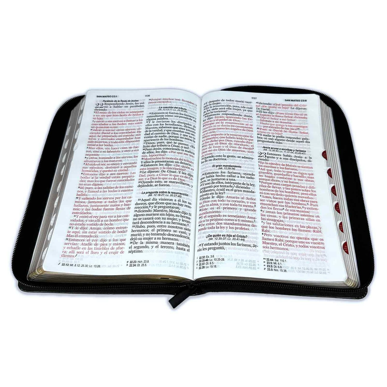 La Biblia RVR1960 Letra Grande 12 pts. Negro con cierre e índice es una edición elegante, práctica y de lectura cómoda. Diseñada en imitación piel color negro, combina sobriedad, durabilidad y estilo, perfecta para acompañarte en tus tiempos de oración, estudio o predicación.