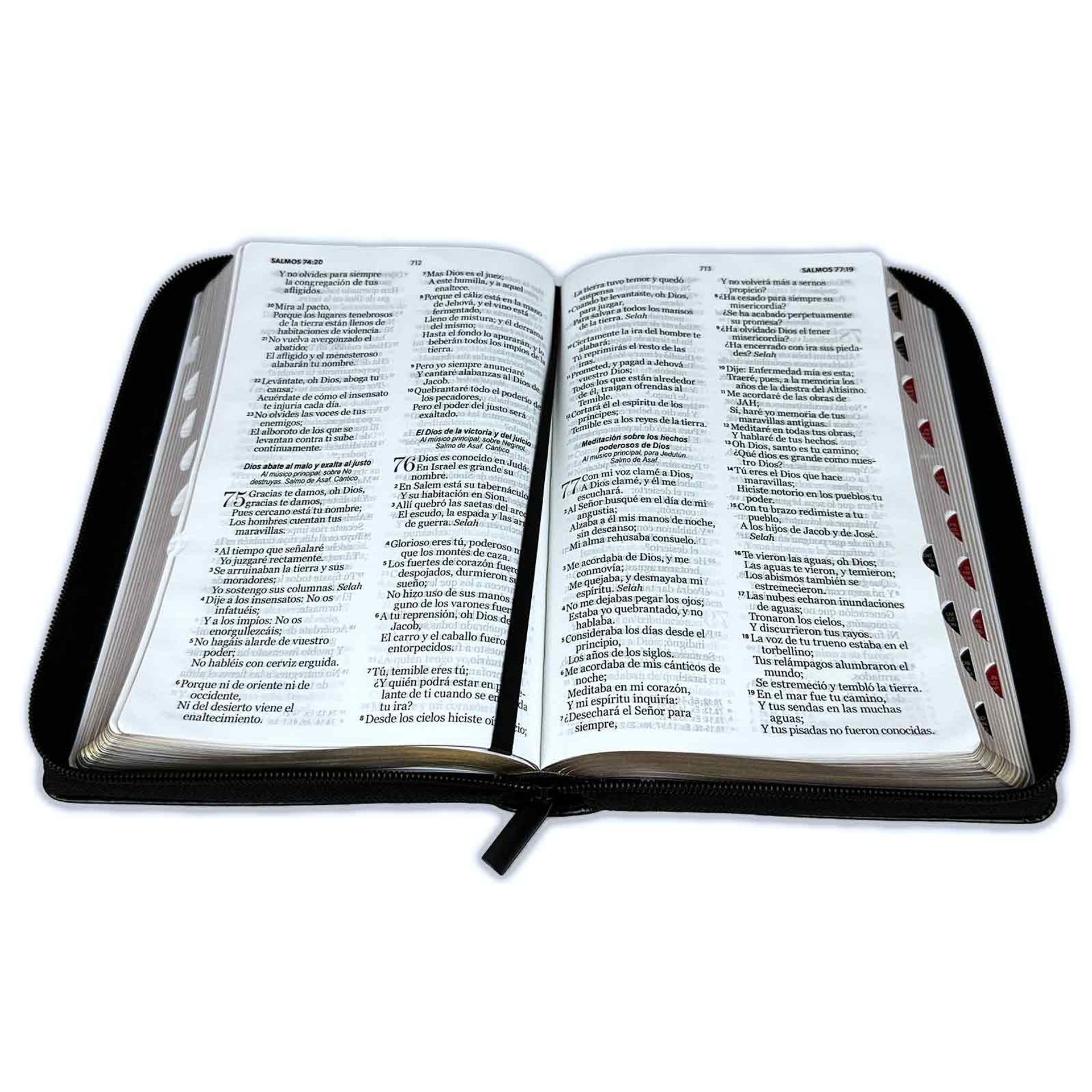 Su letra grande de 12 puntos facilita una lectura fluida, mientras que su tamaño manual y cierre la hacen ideal para llevar a cualquier lugar. Basada en la amada traducción Reina-Valera 1960, mantiene la fidelidad al texto original y el lenguaje clásico que ha edificado la fe de millones de creyentes en todo el mundo.
