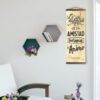Cada detalle refleja dedicación: impresión en serigrafía con tinta negra, madera pintada a mano en tono marrón oscuro y una cuerda de yute que le otorgan un acabado cálido y natural. Ideal para colgar en salas, oficinas, iglesias o espacios de oración.